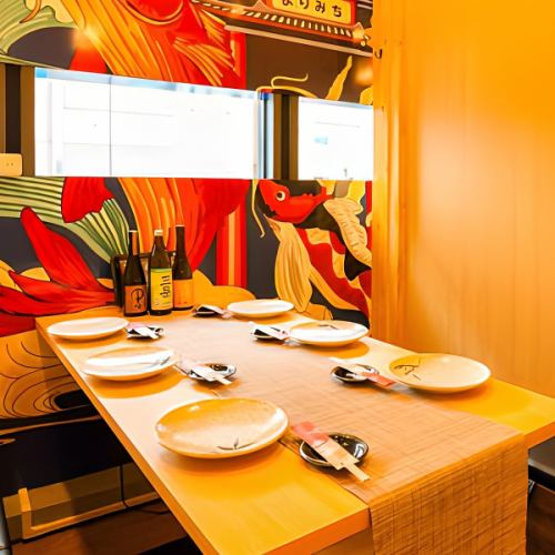雰囲気自慢の個室席は周りを気にせずゆったりお寛ぎいただける人気の席となっております!!団体様にもご利用いただけるレイアウトとなっており、会社宴会や結婚式の二次会、歓送迎会など様々なシーンに対応しております!!